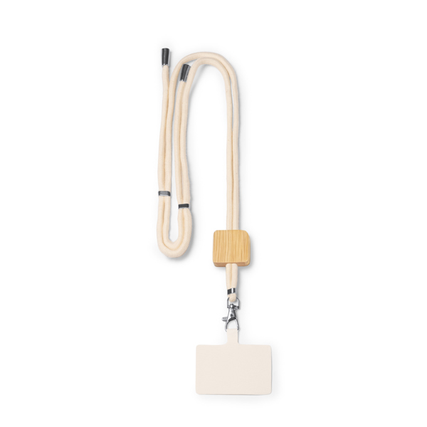 Хлопковый держатель для мобильного телефона со шнуром, с бамбуковой деталью и системой регулировки. БЕЖЕВЫЙ (С КВАДРАТНЫМ ДЕРЖАТЕЛЕМ)