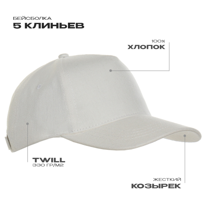 Бейсболка STAN 5 клиньев хлопок 330,01, Молочный (11)