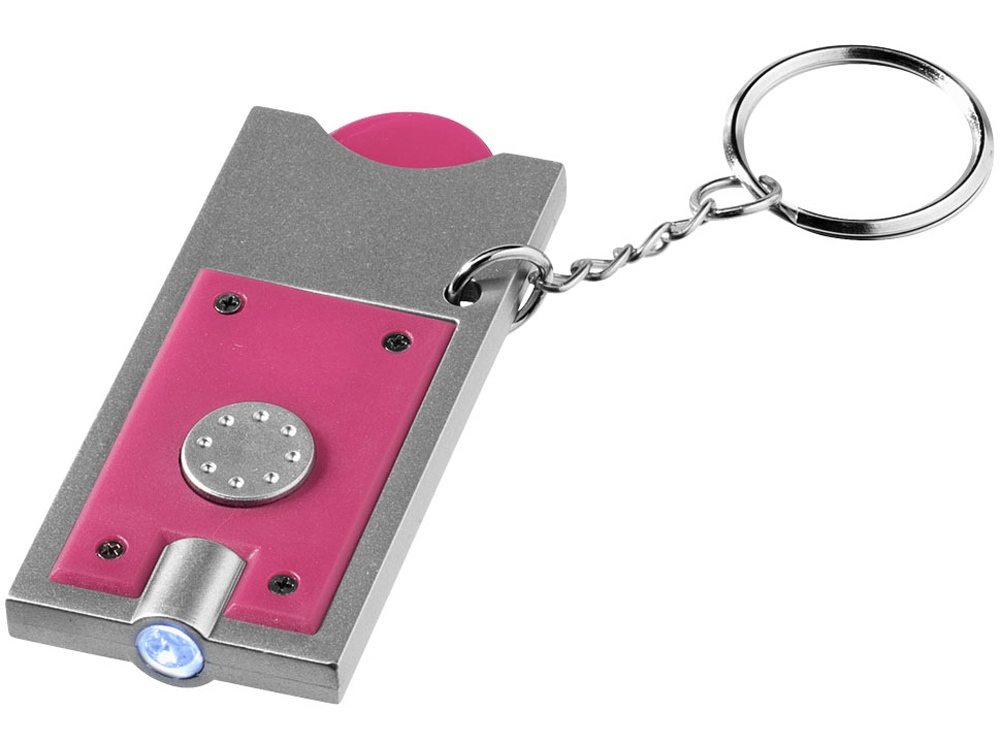 Брелок-держатель для монет Allegro с фонариком для ключей. Пластиковый держатель для монет достоинством 1 евро размером Ø 6 мм с одним белым светодиодом для ключей. Металлическое кольцо для ключей Ø 25 мм. Батарейки включены в комплект и вставлены. АБС-пластик.