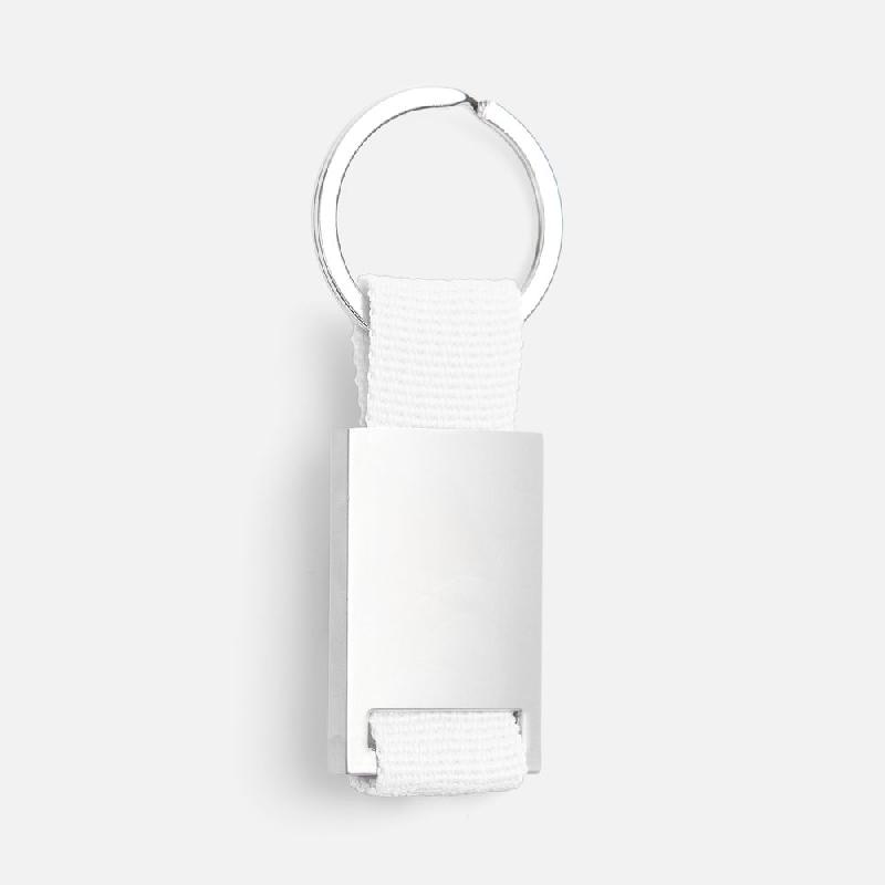 Минималистичный металлический брелок с тканевой вставкой.