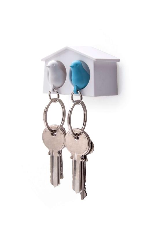 Пусть ваши ключи обретут своё законное место, а заодно и симпатичный брелок. Прикрепите домик-держатель для двоих возле входной двери и вы всегда будете знать, где ваш ключ. А заодно при входе в квартиру сразу поймете, дома ли ваша вторая половинка. Держатель крепится к стене на специальный надежный скотч , либо вешается на два шурупа. Брелок-птичка крепится к кольцу на ключах. Он так же является свистком, вы всегда сможете пошуметь или позвать на помощь в случае опасности. Основные характеристики: Отличный подарок для молодой семьи. Поставляется в фирменной эко-упаковке от Qualy. Оригинальный товар бренда Qualy. Страна изготовитель — Таиланд. Страна бренда — Таиланд. Размер птички: 2,5 х 1,3 х 3,9 см. Размеры: 6,3x4x2,9