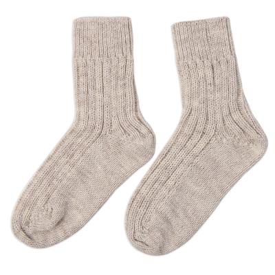 Носки вязаные НАСВЯЗИ©, бежевый меланж, 30% шерсть,70% акрил