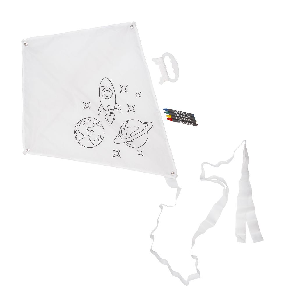 Оригинальная игра-раскраска для детей. Закрасив рисунок - его можно запускать по воздуху, как летучий змей. В комплекте набор с восковыми мелками (синий, зеленый, желтый, красный).