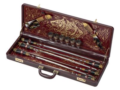 Бордовый дипломат на кодовых замках предполагает, что внутри находится что-то очень важное. Если не миллион долларов, то хотя бы ценные документы. В этом подарочном наборе вы обнаружите кое-что не менее важное, чем документы - набор для приятного времяпровождения. Стопки на 6 персон - не хватает только закуски. Закуску придется взять отдельно, порубить и поджарить на прилагаемых шампурах.