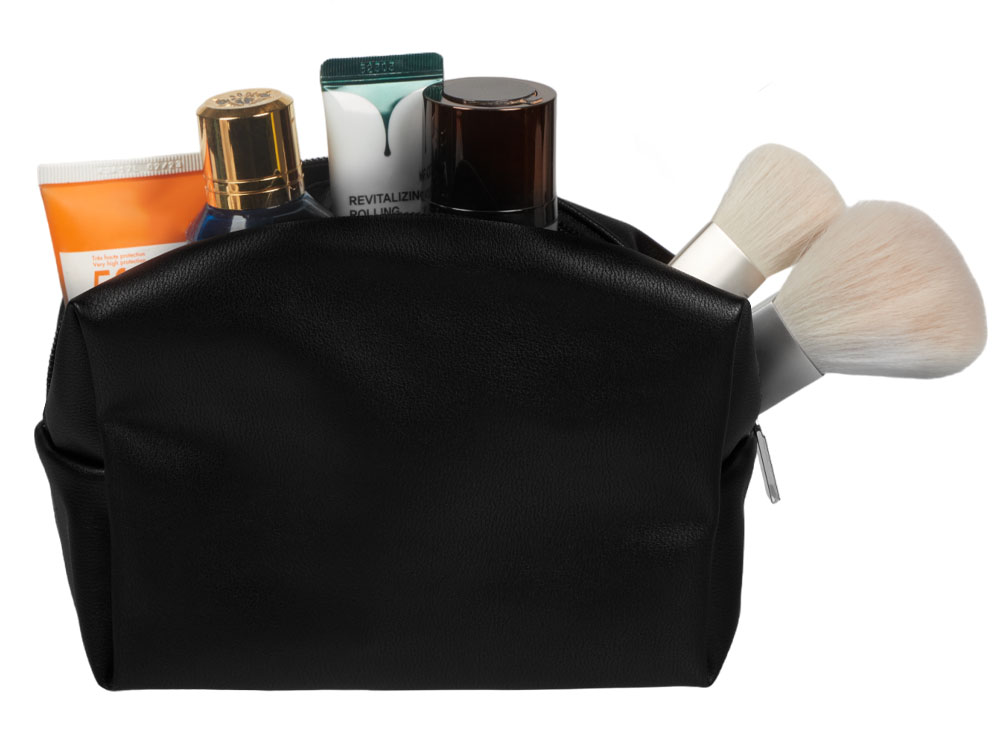 Косметичка из искусственной кожи удобной и вместительной формы. Внутри подклад серого цвета с карманом для маленьких предметов.