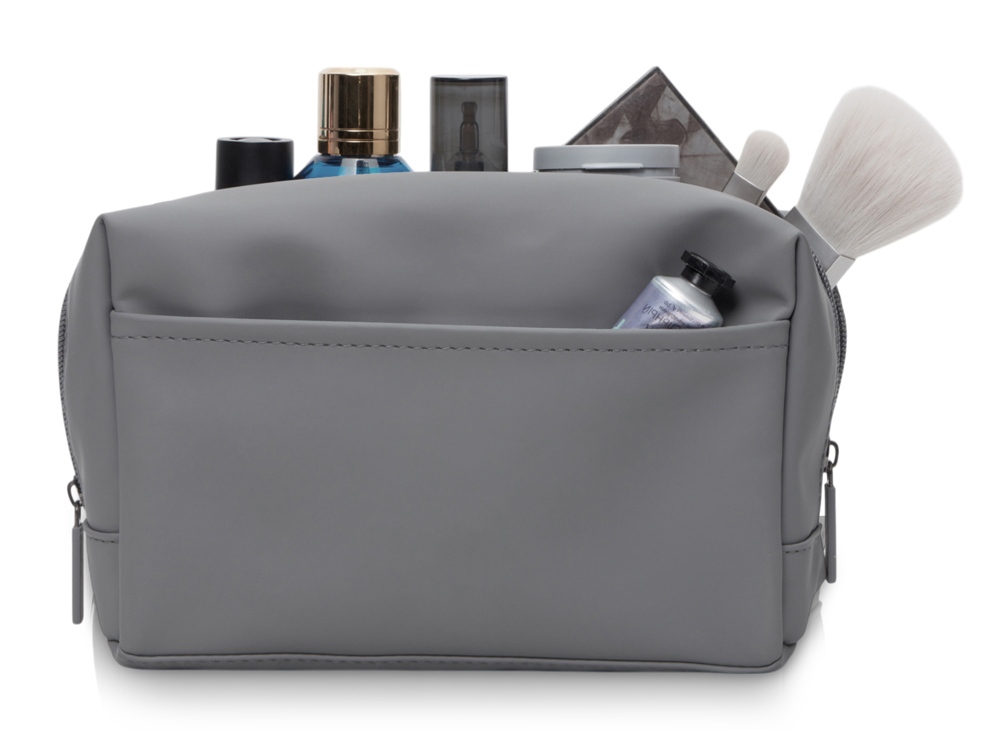 Стильный серый цвет делает косметичку универсальным полем для логотипов любого цвета.