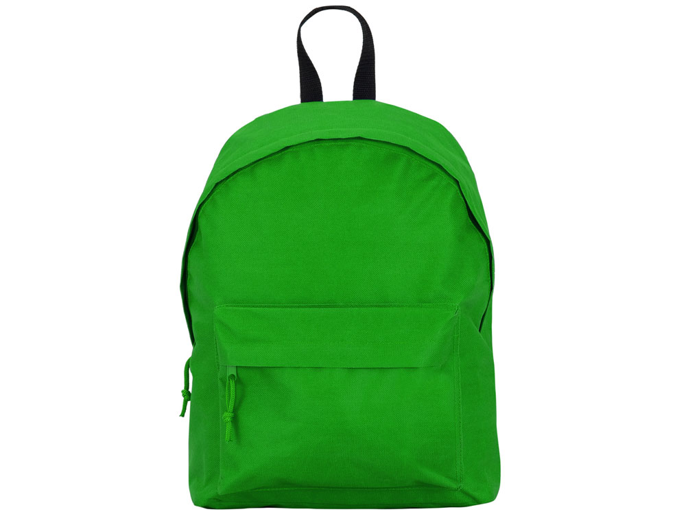 Базовый рюкзак из прочной ткани. Двойной плечевой ремень и контрастная ручка. Два кармана: основной и один спереди с молниями, клапанами и бегунками в тон