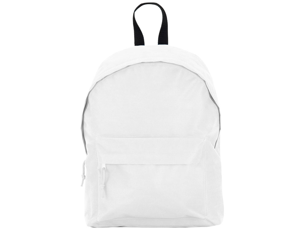 Базовый рюкзак из прочной ткани. Двойной плечевой ремень и контрастная ручка. Два кармана: основной и один спереди с молниями, клапанами и бегунками в тон