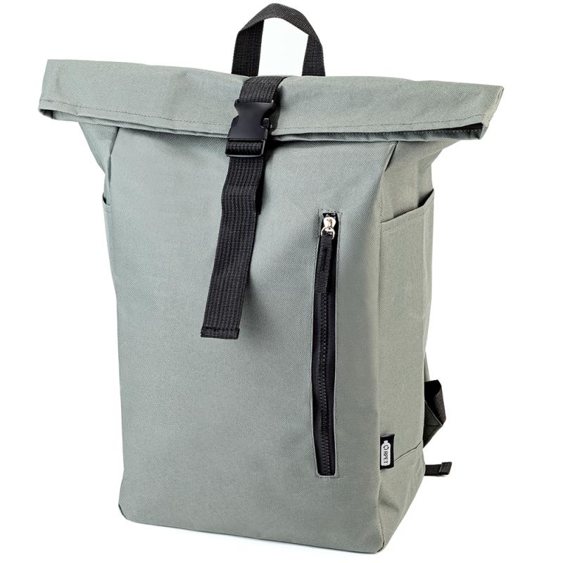 Городской ролл-топ рюкзак ARGON из переработранного полиэстера RPET. Одно основное отделение закрываеся на регулируемый по длине ремень c пряжкой-фастексом. На передней стенке вертикальный карман на молнии-тракторе. Два боковых открытых кармана. Короткая ручка и уплотнённые регулируемые по длине плечевые ремни. Уплотнённая задняя стенка. Размер: 27,5*44(52,5)*16cm Плотность: 600D Рекомендуемая максимальная нагрузка: не более 5 кг. Вместимость: 17 л.