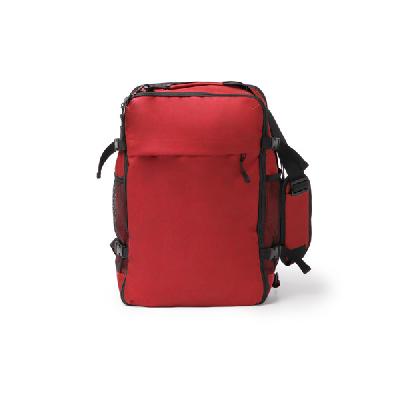 Рюкзак-сумка из 600D RPET, большой объём и открыв на 180 градусов. Большое основное отделение с небольшими внутренними разделителями разных размеров для организации и хранения вещей. Регулируемые пряжки по бокам позволяют фиксировать и регулировать основное отделение. Большой наружный карман на застежке-молнии, два боковых кармана из сетчатой ткани с эластичной регулировкой для переноски бутылок, а также антикражный карман а задней части рюкзака, который также служит местом для хранения плечевых ремней. Рюкзак можно носить и как сумку, отсоединив оплечевые ремни и используя ручки и съёмный регулируемый плечевой ремень. Мягкие ручки и спинка для дополнительного комфорта.