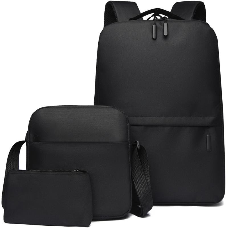 Рюкзак-сет 3 в 1 TRAVEL. Его особенности - компактный размер и три элемента этого cета позволят иметь всё необходимое под руками. 1. РЮКЗАК: Одно большое отделение закрывается молнией о скрытым звеном. На передней стенке скрытый горизонтальный карман на молнии по бокам открытый карман и USB-разъем с проводом для подключения внешнего аккумулятора. Уплотненная короткая ручка сверху и ручка-петля на задней стенке для дополнительного удобства. Уплотнённые плечевые ремни регулируются по длине, а 3D-сетка предотвращает скольжение и обеспечивает дополнительную вентиляцию и комфорт при контакте с кожей и одеждой. 2. СУМКА Кросс-боди: имеет одно отделении на молнии и скрытый карман на передней стенке. Ремень регулируется по длине. 3. ФУТЛЯР: одно отделение на молнии для мелочей и различных аксессуаров Размер: 43*30*12 см, 22*22*5 см, 18*10 см Материал: Полиэстер с водонепроницаемой пропиткой Плотность: 300D Рекомендуемая максимальная нагрузка: не более 7 кг. Вместимость: 14 л. Вес: кг