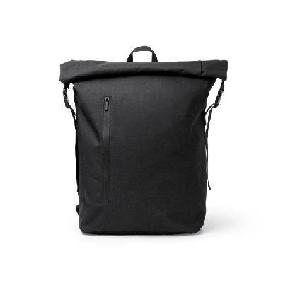 Рюкзак из RPET 300D внутри из ПВХ, отталкивающий жидкость. Эта функция дополняется водонепроницаемыми застежками-молниями. Основное отделение с расширяющимся отверстием сверху, застежкой-липучкой и регулируемыми боковыми пряжками. Внутри он оснащен карманом для ноутбука до 15" и двумя меньшими карманами для других предметов. Большой внешний карман на застежке-молнии. Ремни со светоотражающими деталями и задняя панель имеют мягкую подкладку. Включает ремешок для тележки, что делает его универсальным и удобным вариантом.