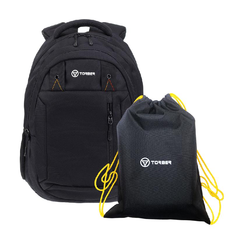 Рюкзак TORBER CLASS X, черный, 45 x 32 x 16 см + Мешок для сменной обуви в подарок!