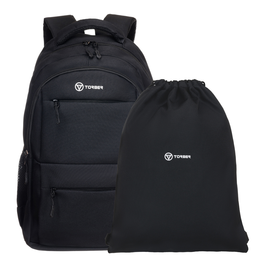 Рюкзак TORBER CLASS X, черный, полиэстер 900D, 45 x 30 x 18 см + Мешок для сменной обуви в подарок!