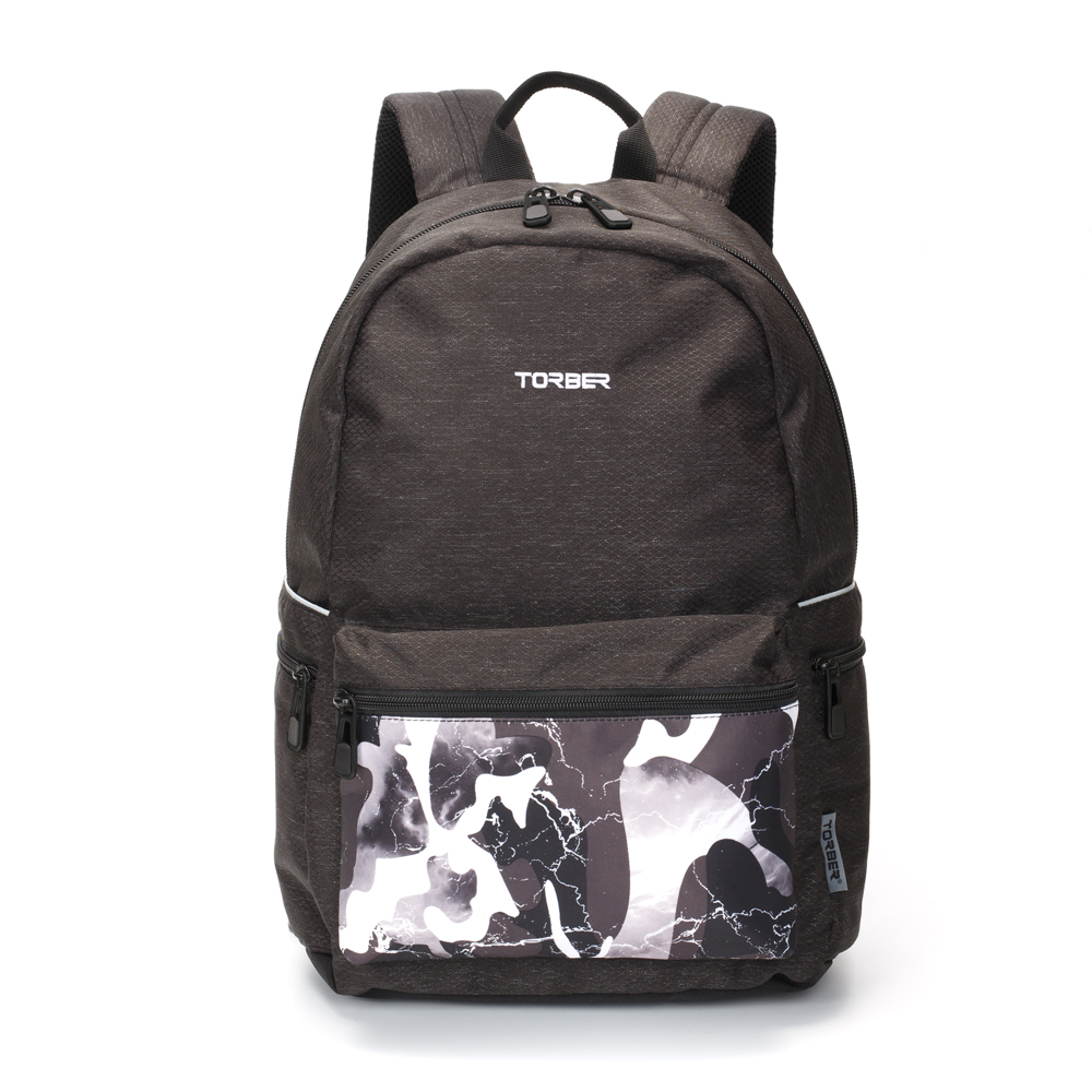 Рюкзак TORBER GRAFFI, серый с карманом черно-белого цвета, полиэстер, 44 х 31 х 18 см