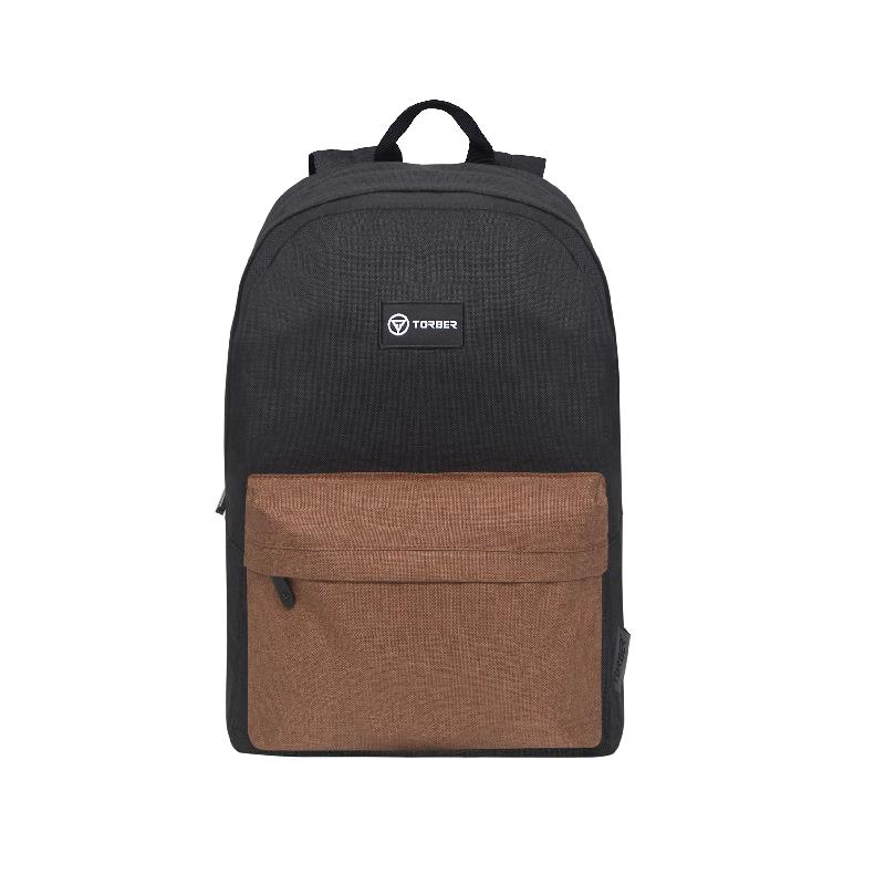 Рюкзак TORBER GRAFFI, черный с карманом коричневого цвета, полиэстер меланж, 42 х 29 x 19 см