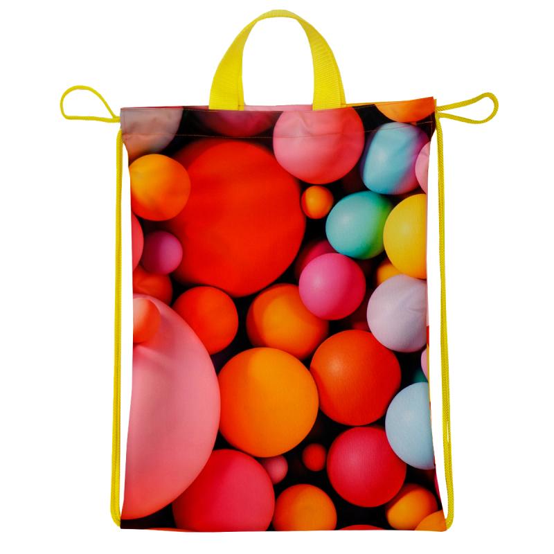 Сумка-рюкзак с полноцветной печатью идеально подходит для отдыха, тренировок и станет идеальнысм подарком. Полноцветная печать по всей поверхности от шва до шва позволяет запечатать всю поверхность изделия ярким принтом и реализовать самые смелые идеи. Возможны любые оттенки по CMYK: логотипы, надписи и разнообразные принты. Односторонняя сублимация. Вместительная сумка-рюкзак затягивается шнуром по вержнему краю. Две короткие ручки и шнуры позволяют комфортно носить ее как в руке, так и на плечах.Без подкладки. Размер: 33*45 см. Материал: Ткань Промо 100% полиэфир плотностью 245 г/м² Ширина ручек: 30 мм Длина ручек: 25 см