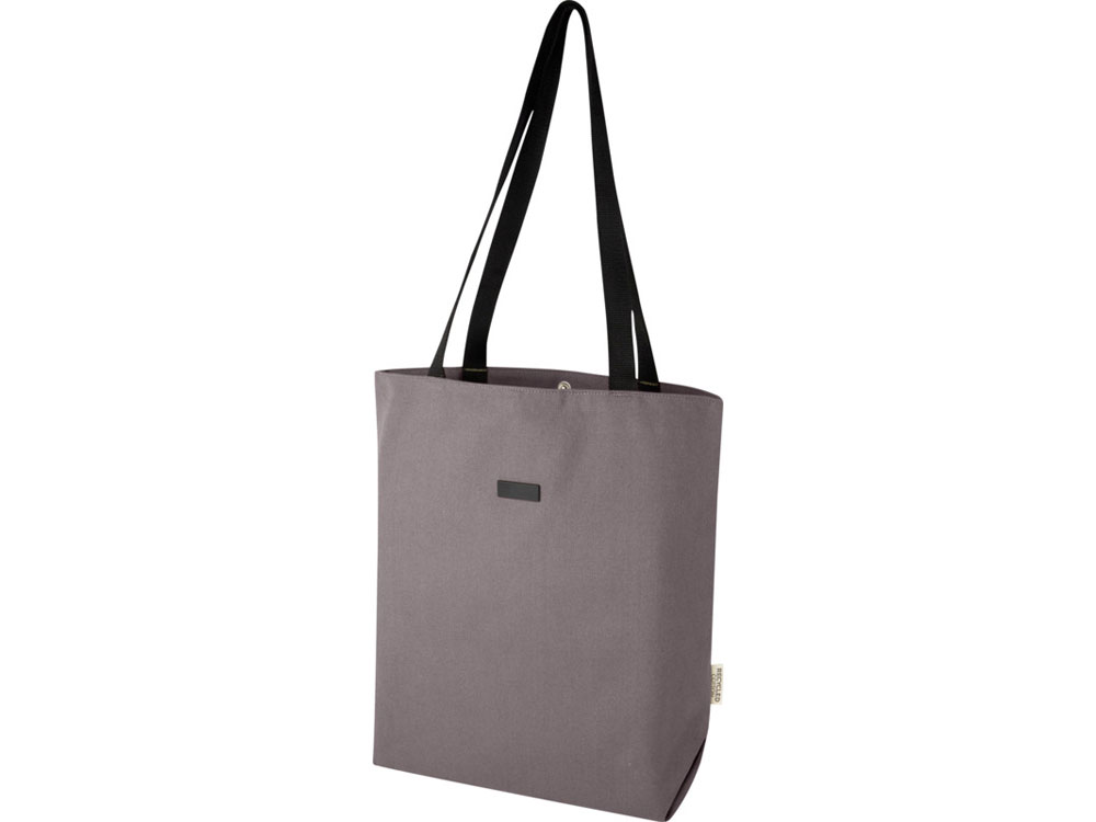 Эко-сумка изготовлена из переработанного холста, сертифицированного по стандарту GRS, и имеет подкладку из переработанного ПЭТ-пластика, сертифицированного по стандарту GRS. Универсальная эко-сумка имеет мягкое отделение для ноутбука с диагональю 15 дюймов и два карманных рукава внутри для телефона, кошелька или аксессуаров, а также удобную застежку на кнопке для открытия и удобные плетеные ручки из хлопка. Декоративная металлическая пластина может придать логотипу сияние благодаря утонченному матовому покрытию.