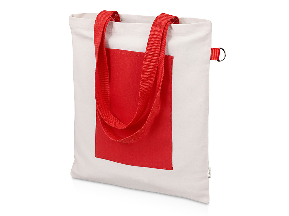 Сумка-шоппер из полностью переработанных материалов с большим контрастным карманом спереди станет стильным аксессуаром для любого случай, как поход в магазин, поездка на пикник или в путешествие. Сбоку предусмотрено д-кольцо для крепления ремувок с вашим логотипом, выполненное из переработанного металла.