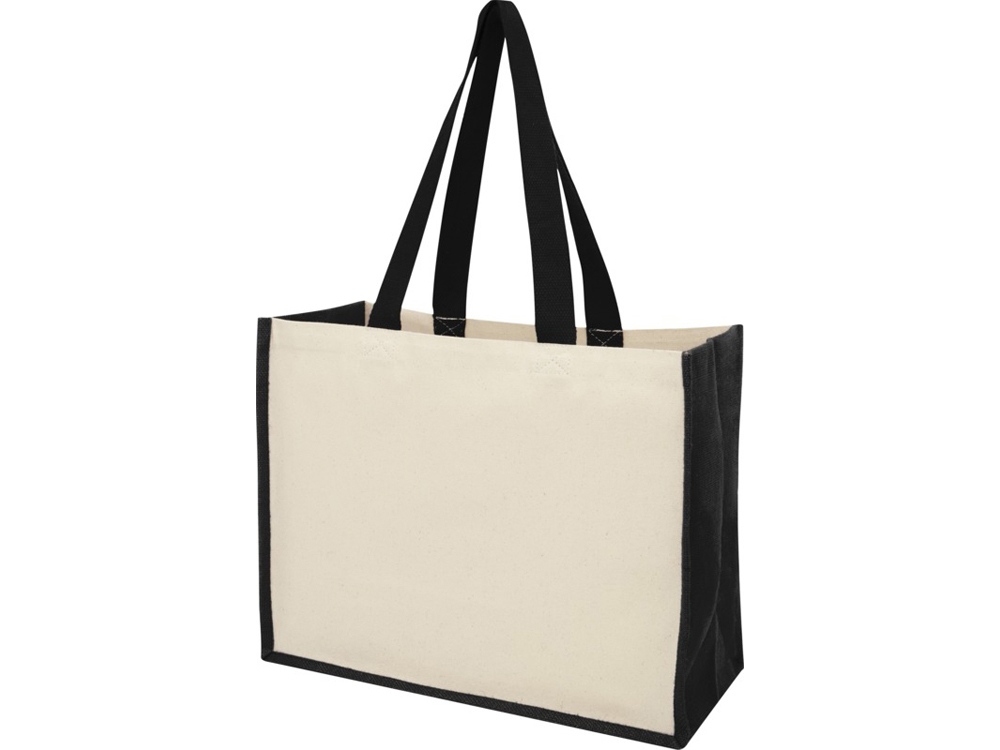 Модная сумка для покупок с боковыми панелями (вес 320 г/м²), подходящими для нанесения изображений, окантовкой из ламинированного джута и хлопковыми ручками.