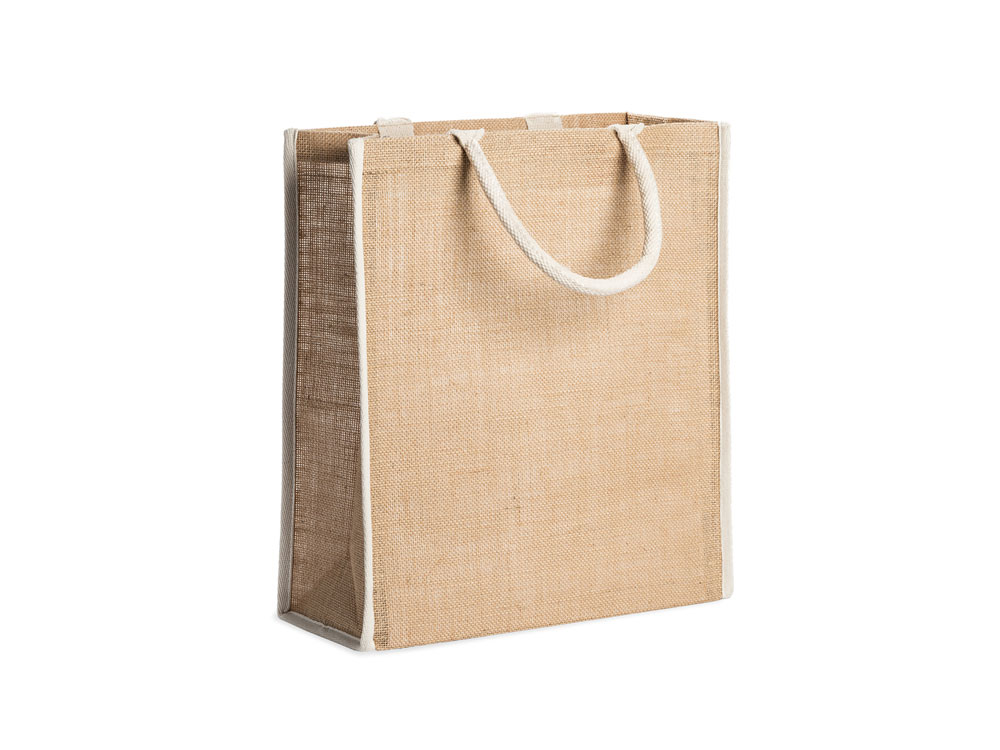 Сумка из натурального джута с отделкой и усиленными хлопковыми ручками.