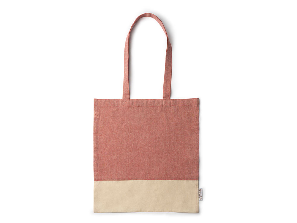 Сумка из переработанного хлопка с отделкой из натурального хлопка плотностью 120 г/м². Усиленные ручки длиной 70 см.