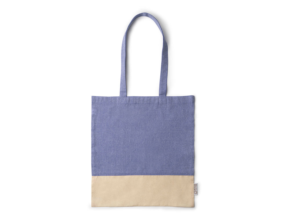 Сумка из переработанного хлопка с отделкой из натурального хлопка плотностью 120 г/м². Усиленные ручки длиной 70 см.