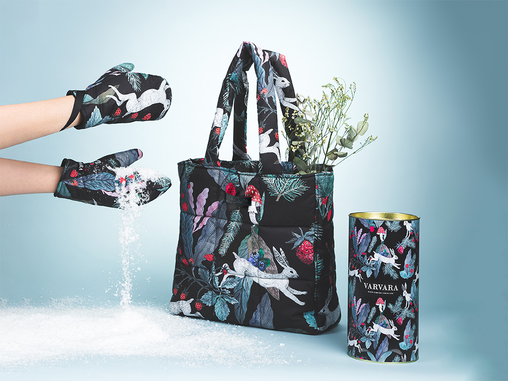 Стеганая сумка-шоппер с принтом Зайцы от российского бренда Varvara.