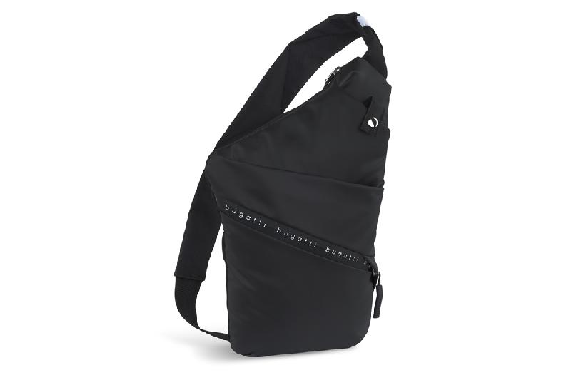 Сумка мужская с одним плечевым ремнем BUGATTI Blanc Delight, чёрная, нейлон RPET600D/тарпаулин/полиэстер, 22х10х33,5 см, 1 л
