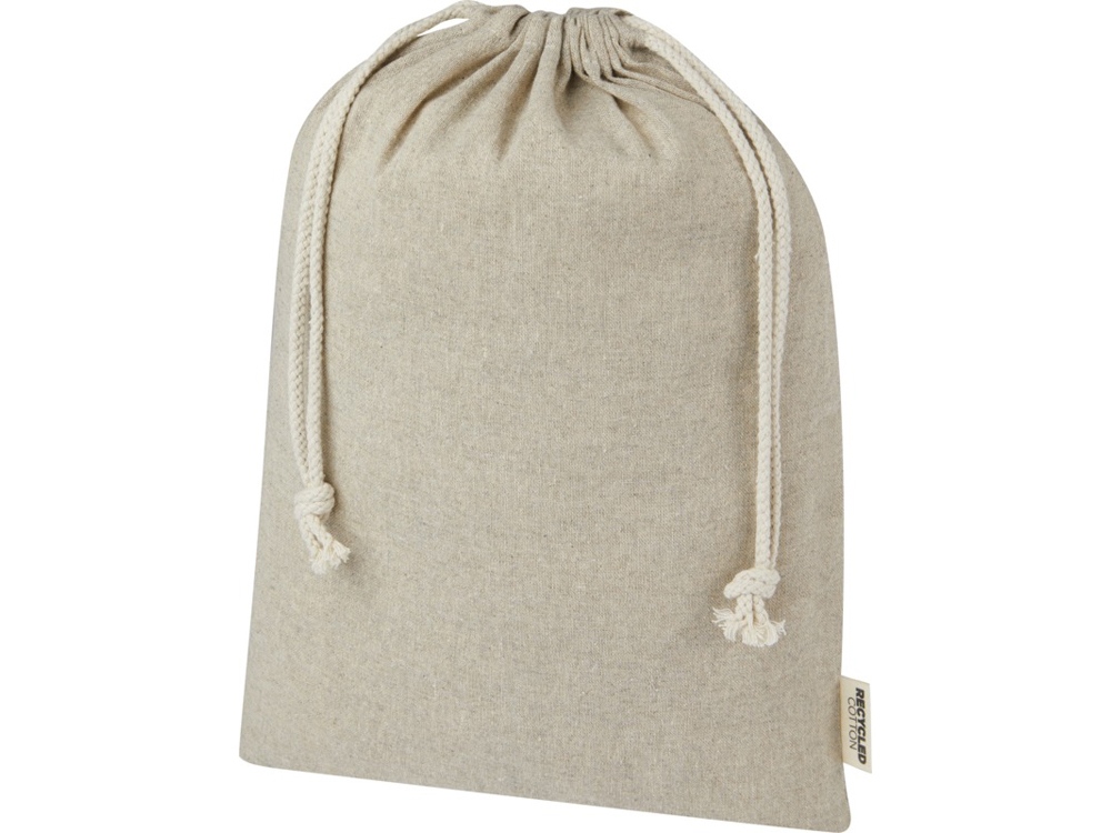 Подарочная сумка из хлопка, переработанного по стандарту GRS, с хлопковым шнурком для затягивания. Идеально подходит для подарков или хранения предметов. Размер: 30 x 42 см.
