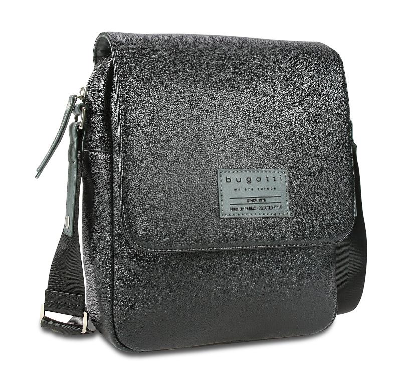 Сумка наплечная BUGATTI Moto D, чёрная, полиуретан, 25х8х30 см, 4 л
