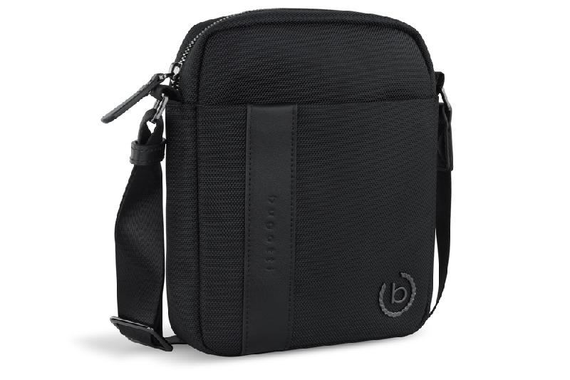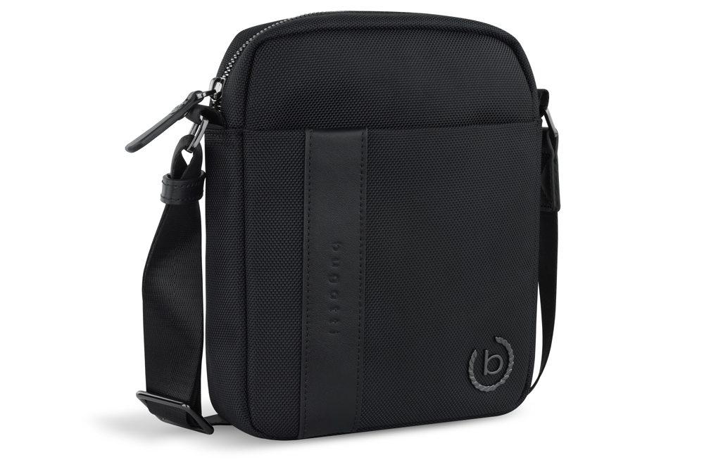 Сумка наплечная мужская BUGATTI Nero, чёрная, нейлон 1680D/кожа, 17х5х21 см