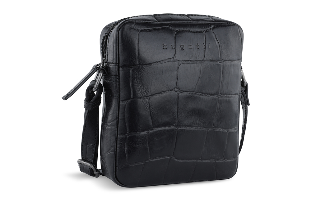 Сумка наплечная мужская BUGATTI Nevio, чёрная, воловья кожа/хлопок, 17,5х5,5х19,5 см, 2 л