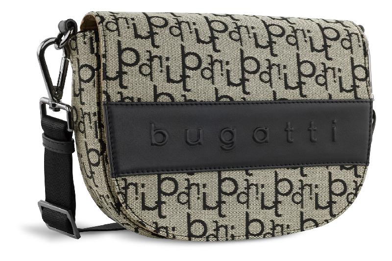 Сумка женская BUGATTI Elea, бежево-черный цвет, жаккард/воловья кожа/полиэстер, 26х6,5х18 см