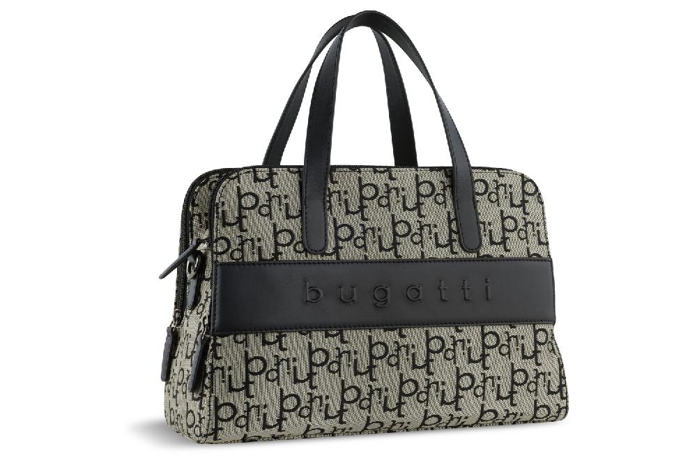 Сумка женская BUGATTI Elea, бежево-черный цвет, жаккард/воловья кожа/полиэстер, 32х12х21 см
