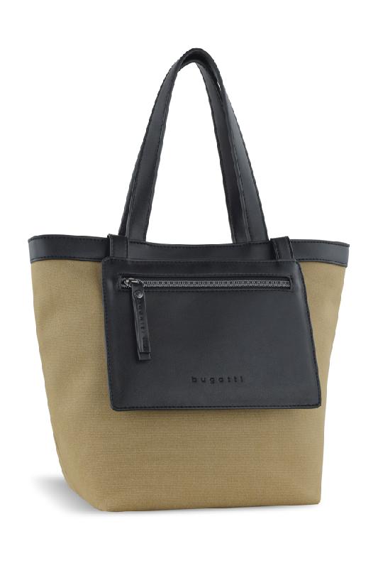 Сумка-тоут женская маленькая BUGATTI Elena, песочная, канвас, полиуретан, 33 x 15,5 x 24 см