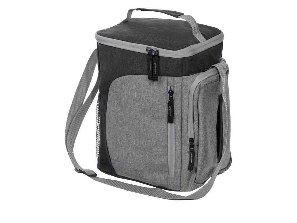 Удобная изотермическая сумка, в которую вы легко можете поместить продукты, несколько ланчбоксов и даже 12-15 банок по 0,33 л. Снаружи сетчатый карман, фронтальный карман для мелочей на молнии, отделение для хранения влажных салфеток и ручка для переноски. Лямка на плечо регулируется по длине. Время поддержания температуры 3-5 ч в зависимости от окружающей температуры.