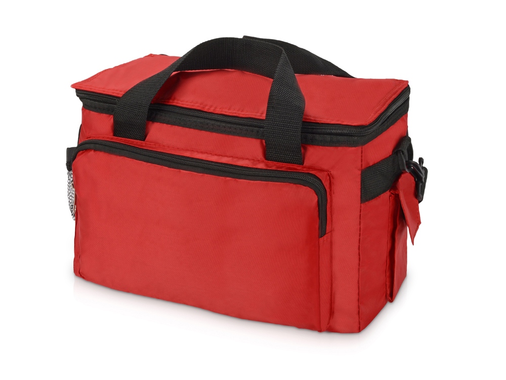 Вместительная сумка-холодильник (объем – 15 л.) Камайоре прекрасно подойдет не только для индивидуальных пикников, но даже и для доставки горячих продуктов (пиццы, например). С боков 2 кармана – один сетчатый с регулируемой затяжкой для бутылки. Другой для приборов, салфеток или других мелочей закрывается на липучку. Наружный слой сделан из полиэстера, на него может быть нанесена персонализация: имя владельца или логотип компании.
