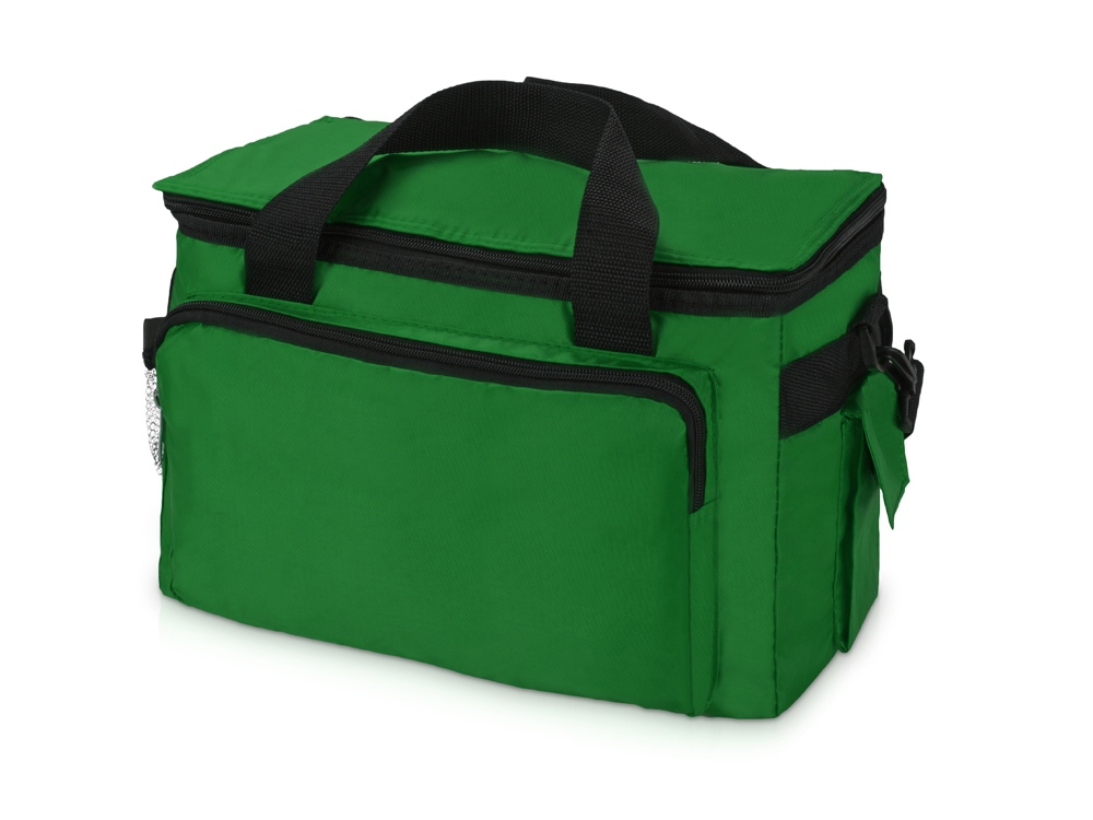 Вместительная сумка-холодильник (объем – 15 л.) Камайоре прекрасно подойдет не только для индивидуальных пикников, но даже и для доставки горячих продуктов (пиццы, например). С боков 2 кармана – один сетчатый с регулируемой затяжкой для бутылки. Другой для приборов, салфеток или других мелочей закрывается на липучку. Наружный слой сделан из полиэстера, на него может быть нанесена персонализация: имя владельца или логотип компании.