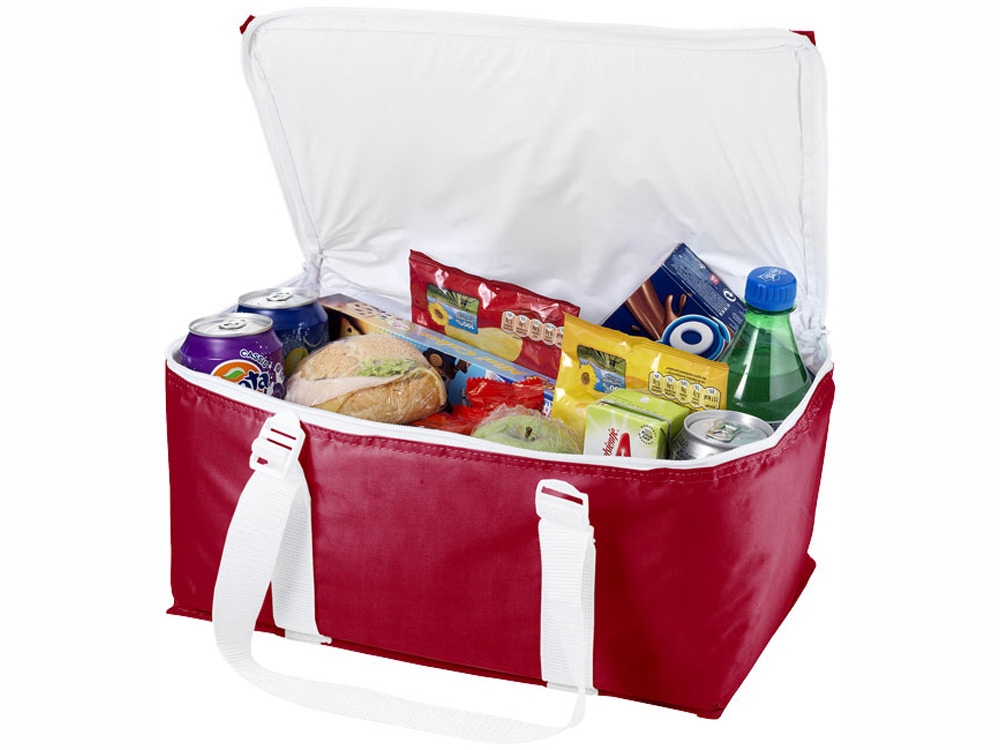 Большая сумка-холодильник на 17л вмещает до 12 банок. Стропу можно использовать для переноски полотенца.