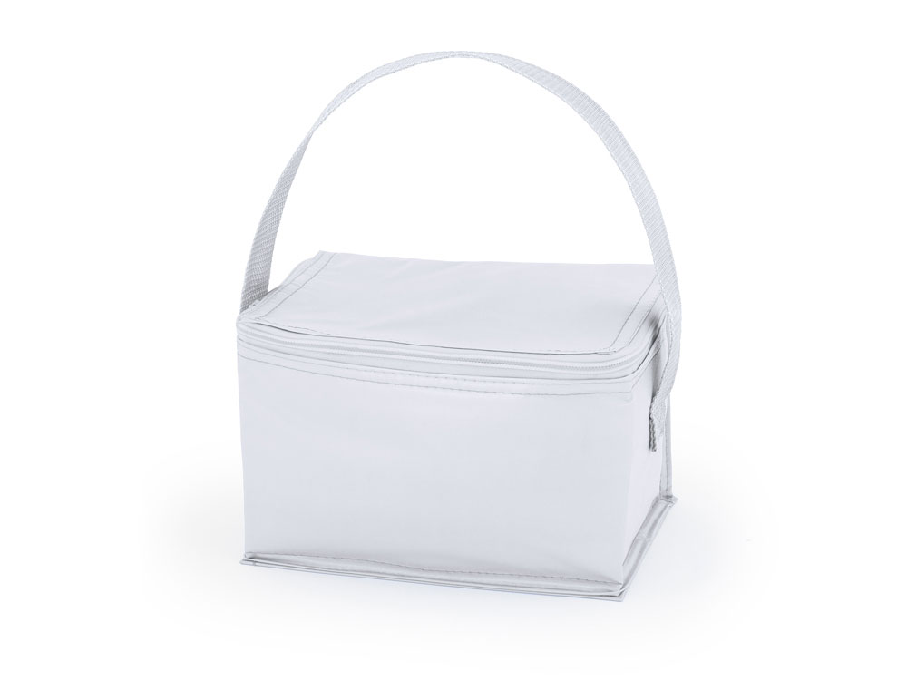 Сумка-холодильник с подкладкой из изотермического алюминия на 6 банок из ПВХ. Ручка для переноски и застежка-молния.