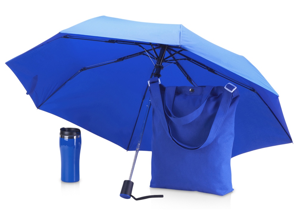 Набор для прогулок и шоппинга в любую погоду. На случай дождя предусмотрен зонт. Если на улице холодно, можно налить в кружку любимый согревающий напиток, а вместительная удобная сумка выдержит вес множества покупок. Сумку можно нести в руке или на плече для вашего удобства.