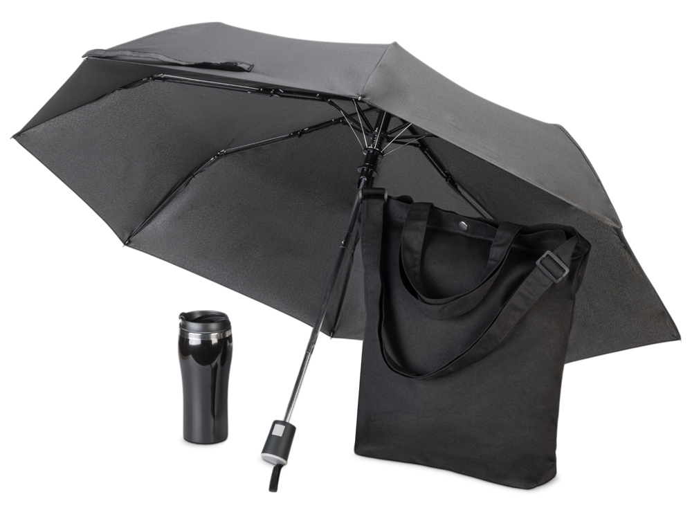 Набор для прогулок и шоппинга в любую погоду. На случай дождя предусмотрен зонт. Если на улице холодно, можно налить в кружку любимый согревающий напиток, а вместительная удобная сумка выдержит вес множества покупок. Сумку можно нести в руке или на плече для вашего удобства.