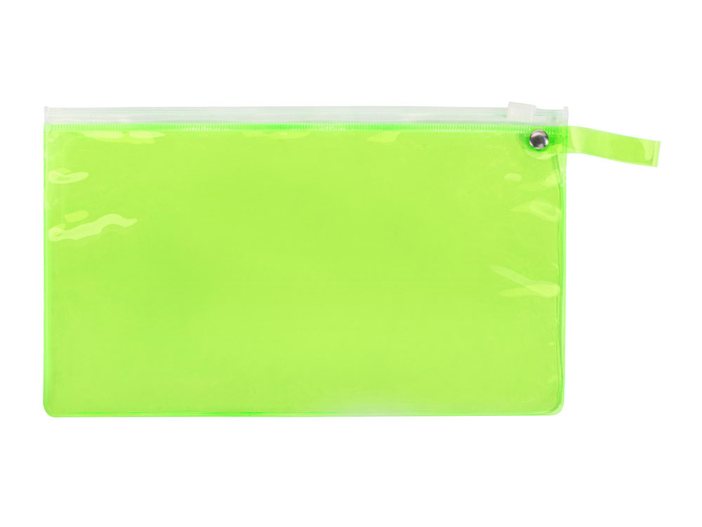 Яркий пенал из ПВХ закрывается на zip-замок. На этот пенал можно нанести название компании и вложить в него несколько сувениров небольшого размера.