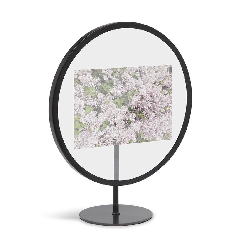 Конструкция изделия позволяет размещать фотографию между двух стеклянных панелей, тем самым защищая ее загрязнения и выгорания. Корпус круглой формы выполнен из качественного металла, стойкого к коррозии и ультрафиолетовым лучам. Фоторамку можно прикрепить к стене или поставить на стол, полку или комод.