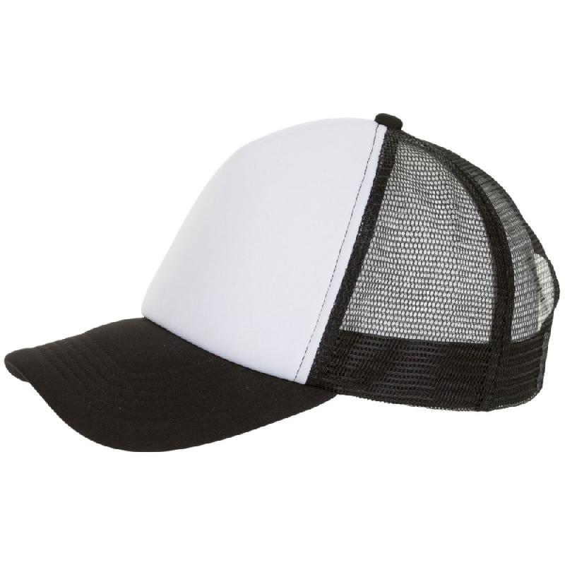 Бейсболка с 5 клиньями из сетки. Поролон в переднем клине (5 мм) и козырьке (3 мм). Регулируемая пластиковая застежка.