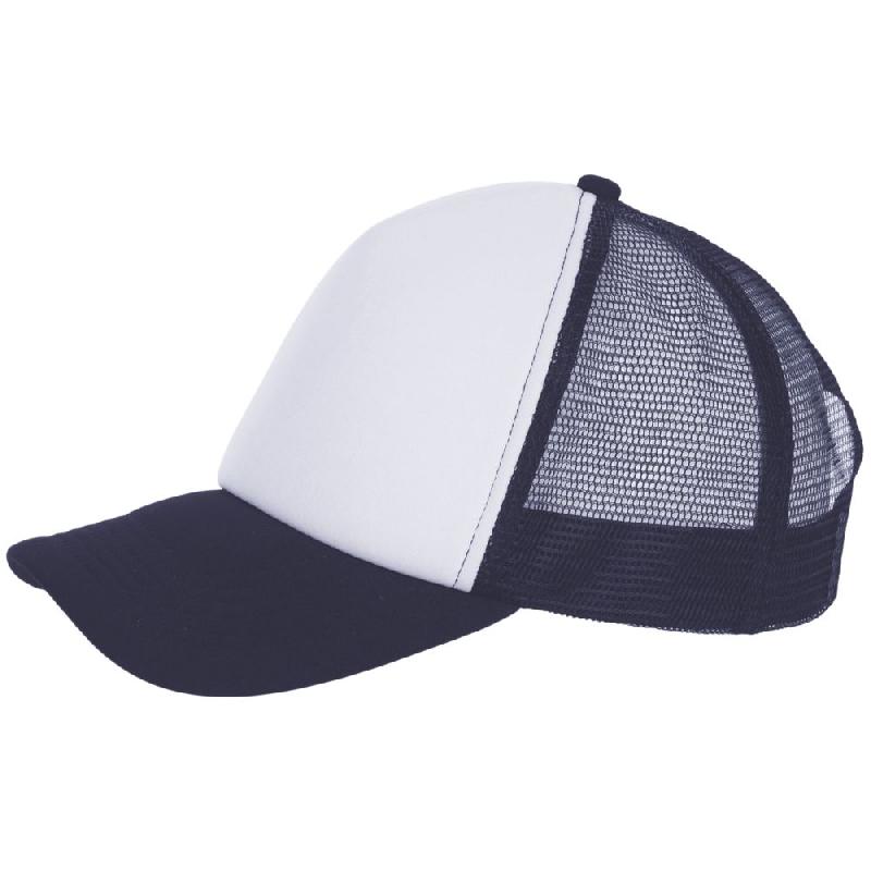 Бейсболка с 5 клиньями из сетки. Поролон в переднем клине (5 мм) и козырьке (3 мм). Регулируемая пластиковая застежка.