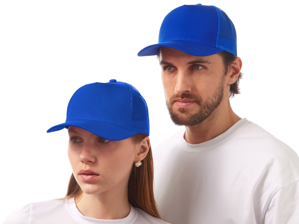 Пяти панельная бейсболка с передней частью из хлопка для комфорта головы и лба. Задняя часть из пластиковой сетки, которая отвечает за циркуляцию воздуха и обеспечивает изделию износостойкость. Для подгонки по размеру головы — пластиковая застежка.
