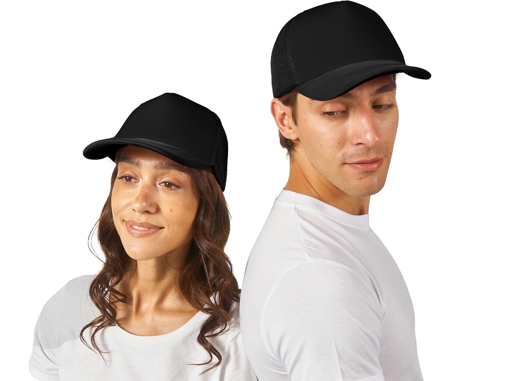 Бейсболка из 5 клиньев с мягкой сеткой. Регулируемая пластиковая застежка сзади. Передняя панель продублирована тонким поролоном.