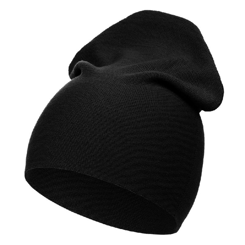 Двухслойная шапка-бини тонкой вязки, которую можно носить как с подворотом, так и без.